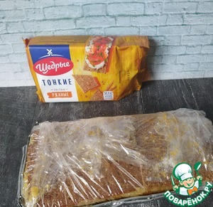Затем выкладываем хлебцы ТМ"Щедрые". Кисточкой смачиваем хлебцы соком или сиропом.