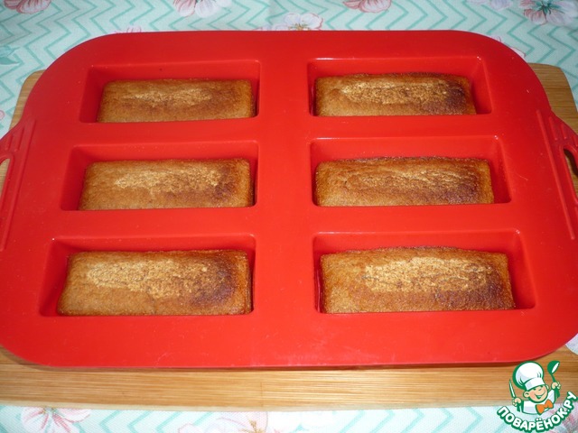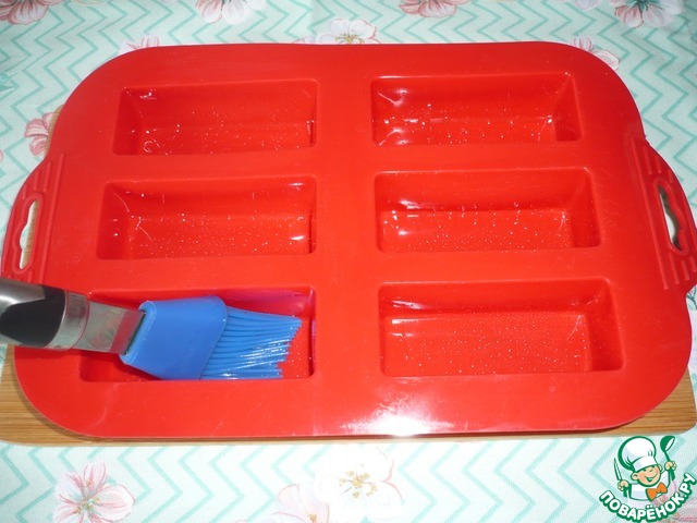 Затем берем форму (у меня силиконовая форма из 6 прямоугольных ячеек - размер каждой 8,5 х 3,5 см ). Смазать формочки растительным маслом.
