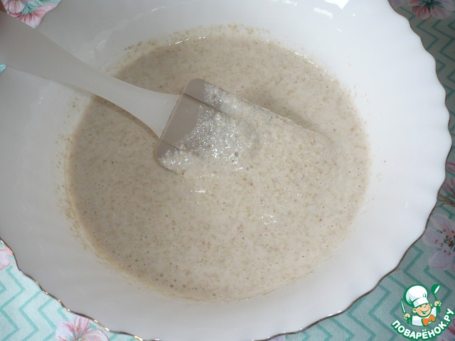 По фото я вижу, что после замачивания в чашке осталась вода. Вы ее сливаете? И потом "Добавить 75 мл воды, соль, мед и перемешать."?