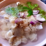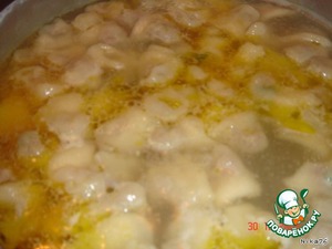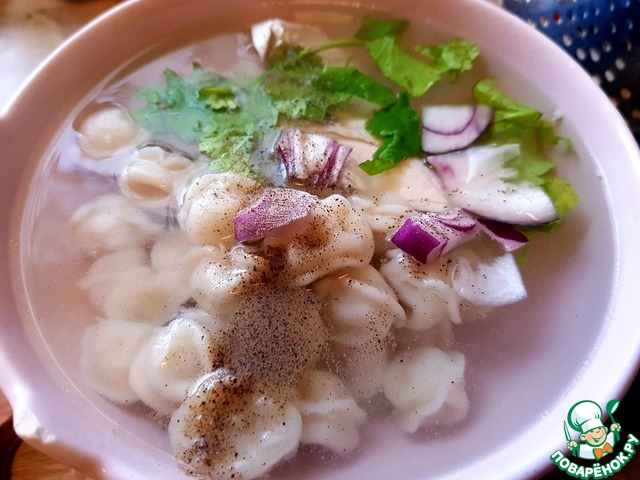 Очень похоже на пельмени. Отличие в том, что это суп и пельмешки очень мелкие. В одну ложку должно поместиться несколько штук. Достаточно трудоемкий процесс.