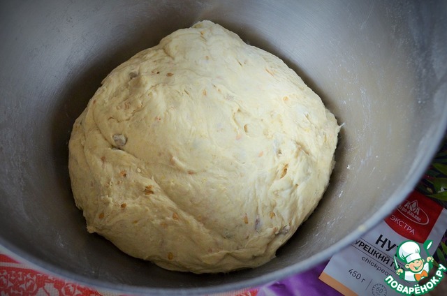 Тесто накрыть, поставить в тёплое место, без сквозняков, на 60-75 минут.