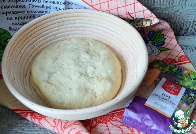 Сформовать колобок и швом вверх перенести в корзину для расстойки. Накрыть и оставить в тепле на 1 час. Духовку с камнем включить на разогрев.