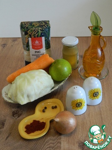 Спасибо за рецепт, который я немного переделаю. Я поджарю лук с морковкой, добавлю к ним капусту, буду жарить или тушить. В кастрюле буду варить рис до полуготовности, к нему добавлю всё остальное из сковородки, яблоко, горчицу и прочее. Наверное получится то же самое, что и у Вас. Ингредиенты же все одинаковые.