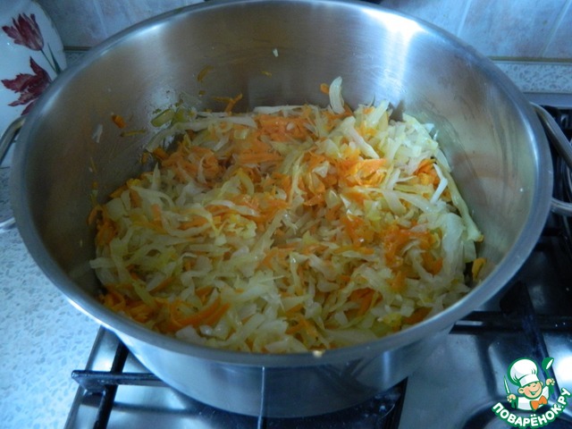 • Добавить капусту к луку с морковью и притушить до мягкости в течение 5 минут.