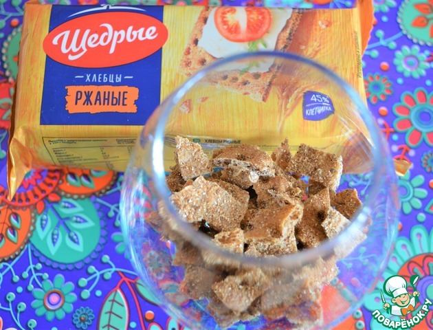 В порционный бокал накладываем произвольно наломанные хлебцы.