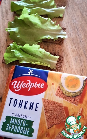 Четвертинки яичницы сложить пополам, положить сверху салатного листа. Посыпать розовым перцем.