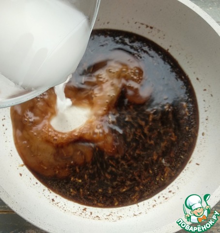 Перемешиваем, ждём, пока растворится сахар, и соус начнёт закипать. -