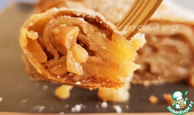Штрудель - очень вкусный десерт из тонкого теста, с яблоками и грушей, орехами. Это - необыкновенно вкусная выпечка понравится и детям и взрослым.