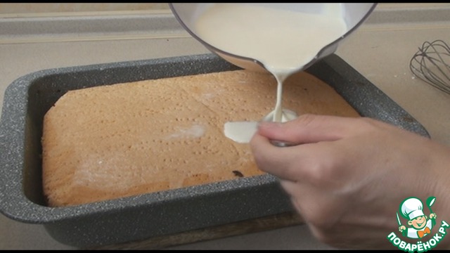 • Пока печется бисквит сделаем пропитку. Смешаем три вида молока, отсюда и пошло название пирога.