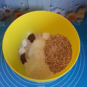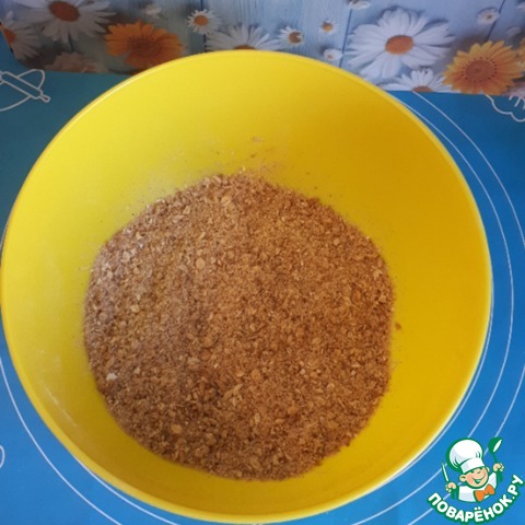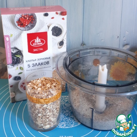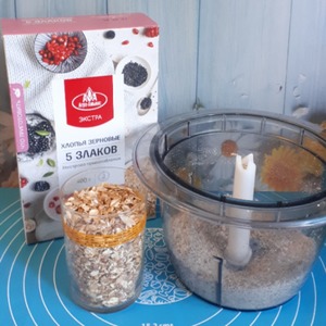 Для изготовления этого печенья понадобится два стакана злаковых хлопьев. Один стакан хлопьев измельчить в муку. Объем стакана 250 мл.
