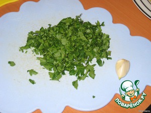 Пучок петрушки мелко нарезать.
