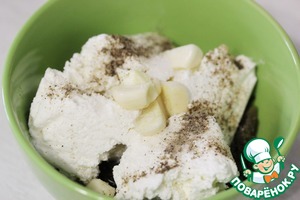 Добавить чеснок, соль и черный молотый перец.