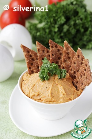 Насыщенный по вкусу дип, с приятной текстурой, густой. Его можно намазать на хлебцы или подать к нему свежие овощи, нарезанные брусочками – будет вкусно! А еще он хорош в качестве начинки для яиц и овощей или тарталеток.
