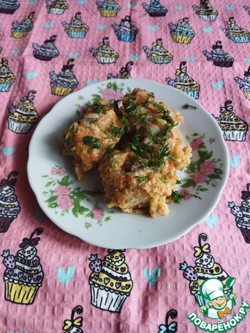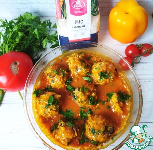 Руками формируем "голубцы", хорошо сжимая фарш и вытесняя лишнею влагу. Выкладываем в форму для запекания, смазанную маслом. И отправляем в разогреую духовку о 180гр. на 15 минут, чтобы голубцы "схватились" и не развалились при запекании.