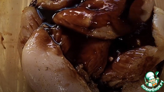 В глубокую миску перекладываем филе, и заливаем его «маринадом» Убираем в сторону.