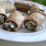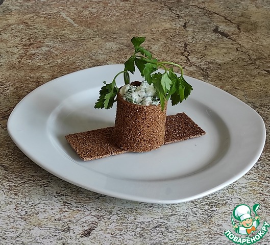 За ночь хлебцы стали мягкими и пластичными и я их просто свернула в рулет, ничем не скрепляя.