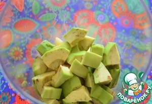 Вынимаем мякоть авокадо, тоже отправляем в блендер.