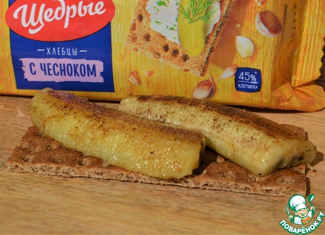 Закройте глаза и представьте себе ощущения от этого бутерброда. Сначала вы ощущаете остроту чеснока с ржаной кислинкой. Подкорка подсказывает, что теперь должен быть ломтик сала или кусочек селёдочки... Далее ваши рецепторы осязают перчёную, солоноватую корочку. Любопытство возрастает... Корочка лопается... А там, тыдыщ, банан!