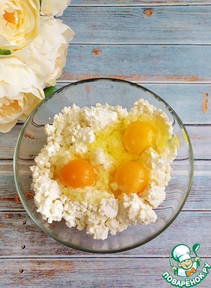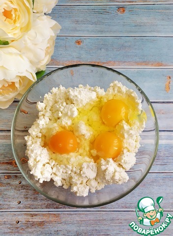 Форму посыпать манной крупой и переложить твороженное тесто. Выпекать в заранее разогретой до 180 гр. духовке 50 минут.