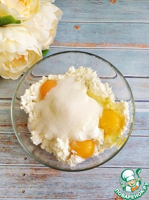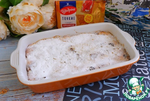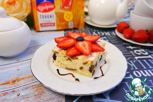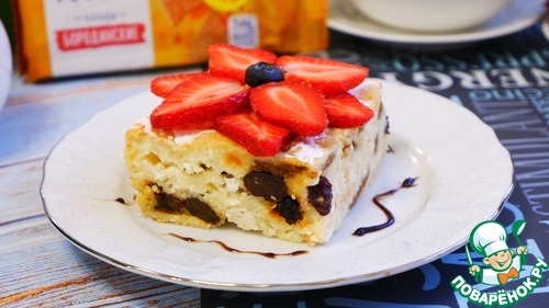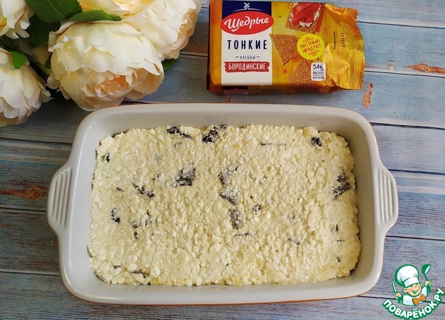 Рецепт «Творожная запеканка с хлебцами и изюмом»: