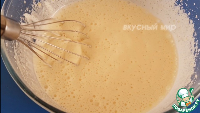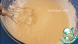В миске соединяем яйца, сахар. Взбиваем миксером примерно 4-5 минут. Белки должны превратиться в пышную массу.
