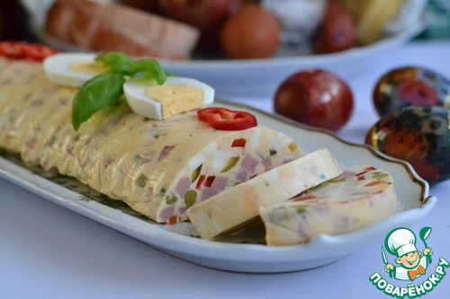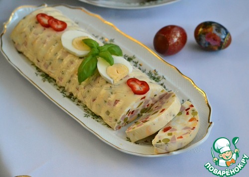 Перед подачей удалить пленку и нарезать закуску на кусочки.