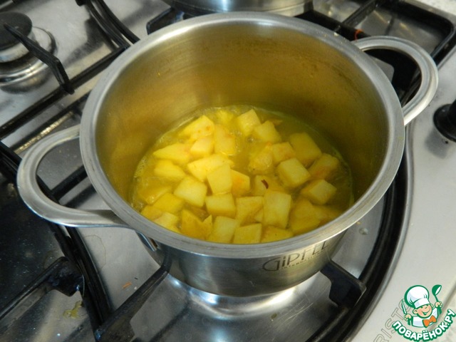 • Притушить с водой и лимонным соком до полуготовности, добавив на кончике ножа куркуму.