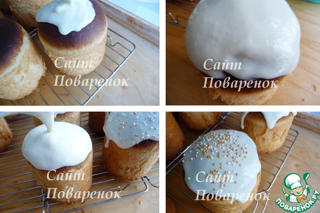 Глазурь нанести на остывшие куличи или кексы. Она плавно стекает.