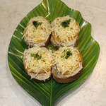 Каждый ломтик обильно смазать приготовленным маслом. Дать постоять 10 минут и разрезать пополам.