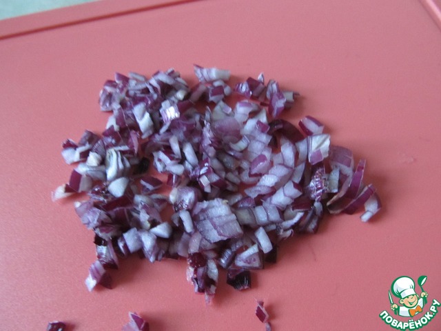 Красный лук нарезать мелкими кубиками.