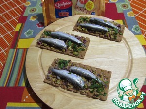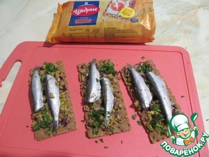 Хлебцы с килькой и оливками
