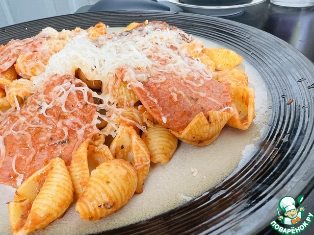 Ингредиенты для «Паста с салями в томатном соусе»: