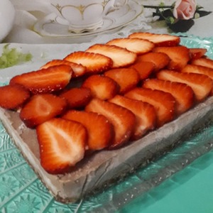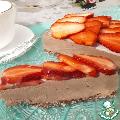 • Замороженный десерт вытащить из формы и украсить свежей клубникой.
