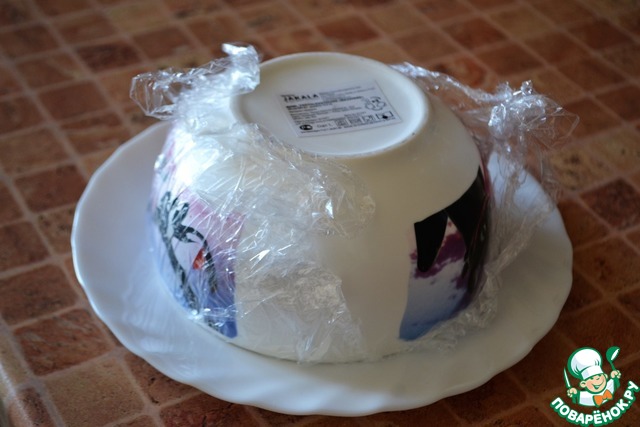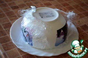 После переверните готовую пасху на тарелку и аккуратно удалите плёнку.
