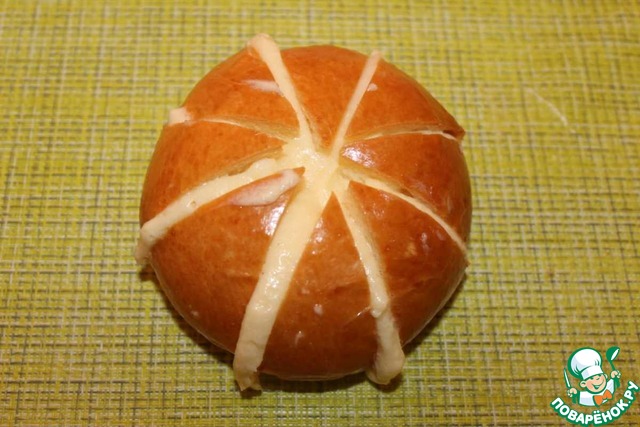 На булочке делаем надрезы на 8 треугольников но не до конца.