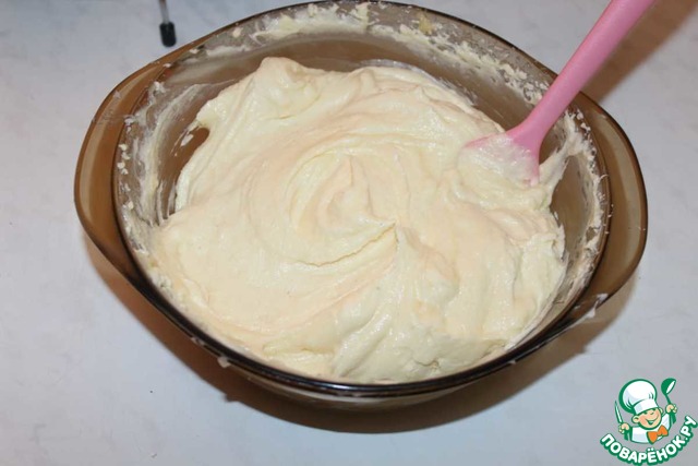 Взбиваем заварную основу. Добавляем постепенно мягкое сливочное масло и продолжаем взбивать.