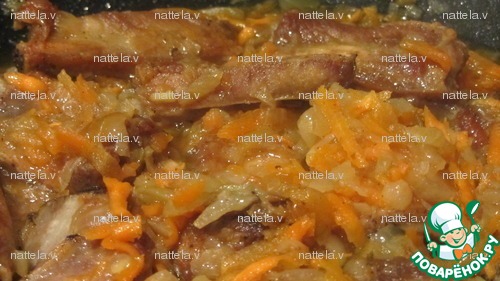 Для мультиварки: В чашу МВ налить немного растительного масла, выложить нарезанное мясо и обжаривать на режиме выпечка 40 мин. (перемешивать). За 10 мин. до сигнала добавить нарезанный лук и натертую морковь, перемешать.