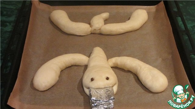 Знаю-знаю, что скульптор из меня еще тот, но может идея формовки кому-нибудь пригодится. Рецепт простой и с тестом работать очень легко. Заходите, если не боитесь рептилий, а я угощу Вас вкуснейшим пирогом с капустой и грибами.