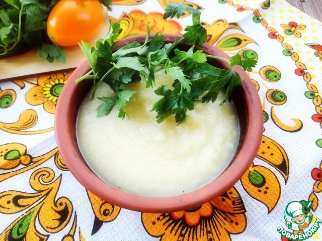 Вкусное, нежное и ароматное пюре. Лук практически не чувствуется. Чёрный перец брала свежемолотый, воды чуть больше, хотелось жиденького пюре.
