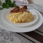 Моё пюре получилось кремового цвета, т.к. лук я обжарила до золотистого цвета, хотелось в готовом блюде сильнее ощущать его вкус. Спасибо, Наташа, беспроигрышный вариант, понравилось всем, кто сегодня ужинал вместе со мной.