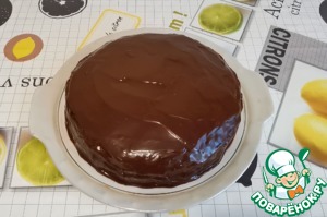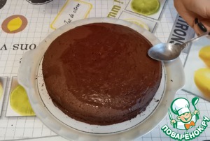 [+4]Ганаш получился жидковат и растёкся по коржам. Бисквит нежный, требует аккуратного обращения, у меня верхний корж при переносе разломился, поэтому полную фотографию делать не стала. Единственное - я всё-таки не воспринимаю шоколадное покрытие как крем, получилось больше как пропитка.