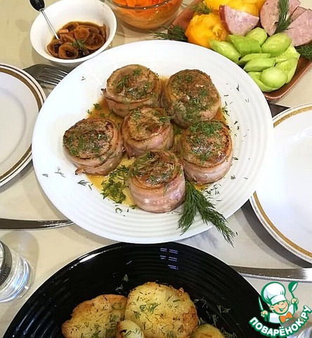 Странно, так мало комментов и положительных оценок такому обалденно вкуснючему рецепту! Ещё и готовится невероятно просто и быстро! Спасибо автору от всей души! Горячее на праздничный стол было готово за 15 минут. Заранее завернула медальоны, оварила в свч картошку, 5 мин. на обжарку медальонов, их на 10 мин в духовку, за это время обжарила картофель по деревенски в той же сковороде. В итоге всё готово одновременно, и подано с пылу-жару. Идеальный вариант! А медальоны - просто пеСТНя! Сочные! Нежные! Не солила, но перед заворачиванием в бекон слегка обваляла в смеси чёрного перца и сухого чеснока. И в начинке фета. Буду повторять обязательно, и всем поваряткам настоятельно рекомендую!!!