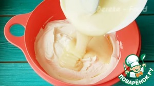 Затем добавляем к сливками сгущеное молоко и перемешиваем примерно 20 секунд