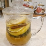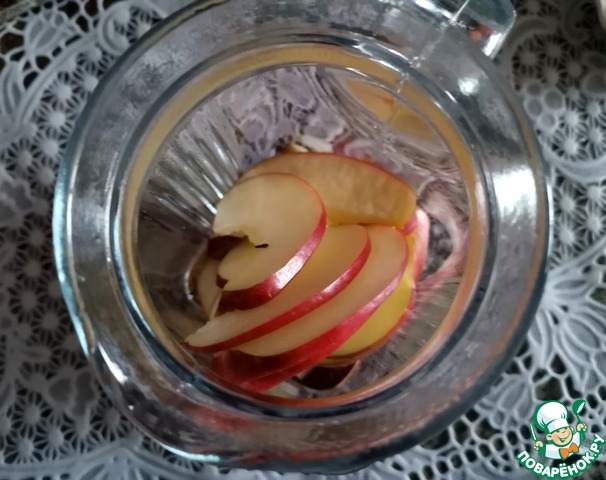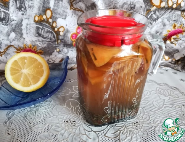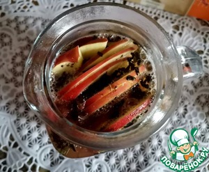 Яблоко и лимон вымыть, нарезать дольками, немного подавить и сложить в чайник.