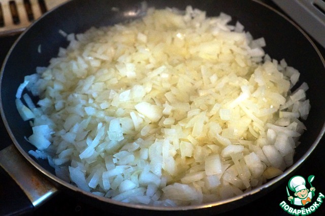 В сковороде разогреть половину масла, отправить лук, чуть позже чеснок, жарить, пока лук не пустит слезу.