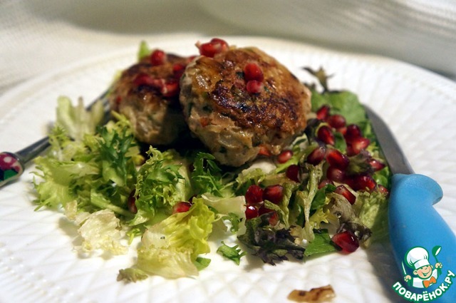 Подавать на подушке из салатного микса, украсив зернами граната.