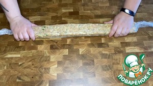 Из фарша сформировать колбаску.