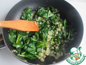В это время шпинат вымыть, обсушить и, если надо, нарезать.