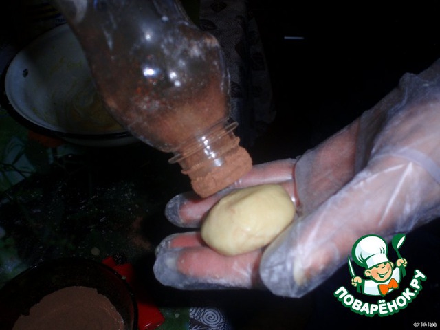 Разделываем готовое тесто на шарики размером с грецкий орех.