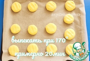 Застелить противень пергаментом, скатать из теста шарики и выложить на противень. Выпекать при 170 градусах 20 минут